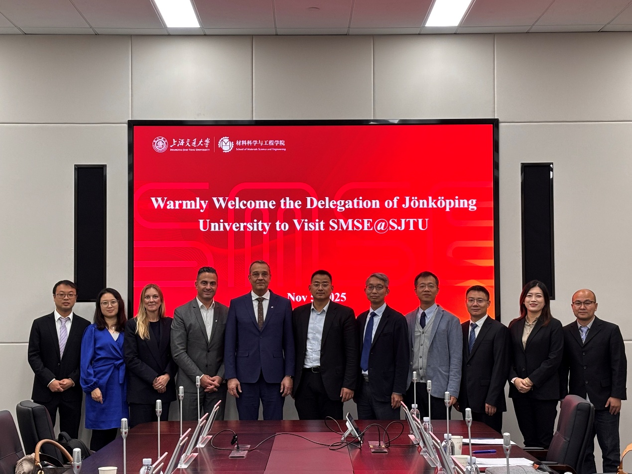 2025年11月5日,瑞典延雪平大学校长曼斯·斯文森(Måns Svensson)、副校长萨利姆·赛菲丁(Salem Seifeddine)一行访问上海交通大学闵行校区。此次访问是延雪平大学首次正式访问上海交大,旨在推动两校在人才培养与科研创新方面的合作,特别是在轻合金材料与先进制造等前沿领域。
